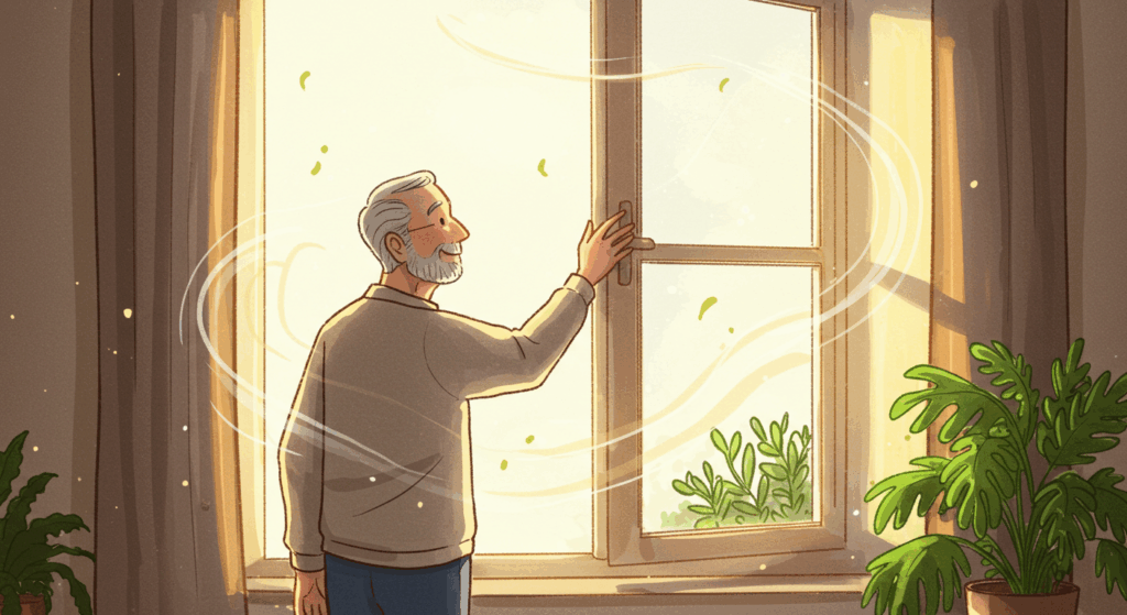 - 窓を開けて換気する:夜の間にこもった空気をリセット